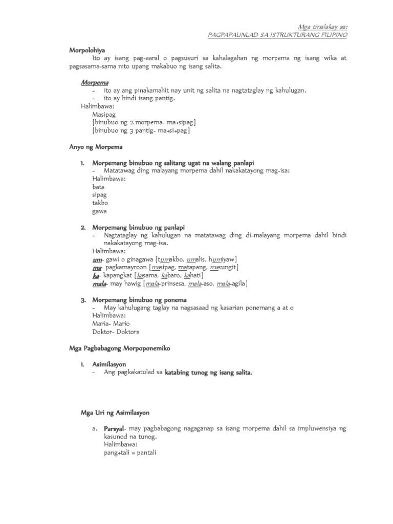 9 Nabibigyang-kahulugan ang mga terminong akademiko na may kaugnayan sa pagsulat ng. Ang morpema ay maaaring salitang ugat o isang panlapi. Noong 1893 ay naitatag nina Basa at Diwa ang sangguniang probinsya ng Cavite na siyang magiging pinakamatagumpay na sanggunian ng Katipunan.