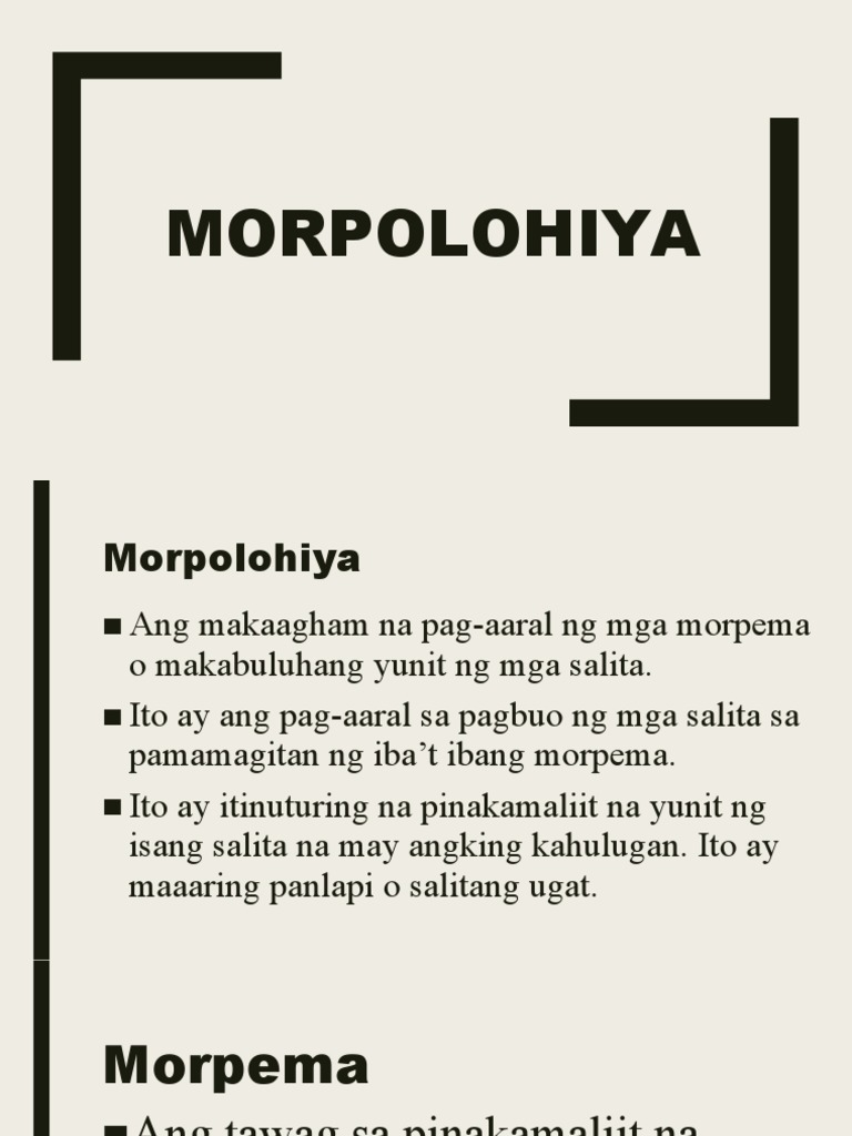 Morpemang ponema morpemang salitang-ugat at ang panghuli ay ang morpemang panlapi. - pag-aaral ng morpema morfim 26. Call the smallest unit.