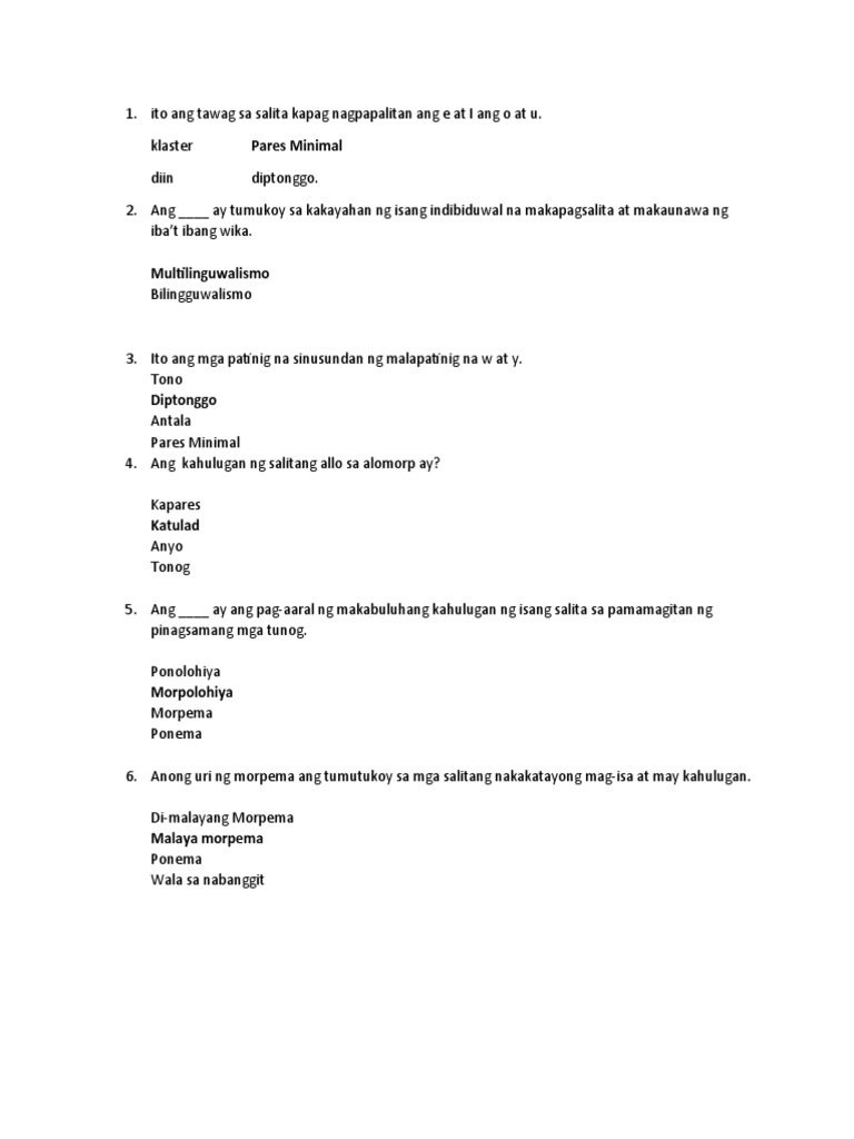 Mali ang ginagawa ni bruno cge nga kung tama kayo ba yung pera na pinaghirapan niyo papayag ba kayo na ibigay lang ito Reply. Ponema ang tawag say unit ng tunog o pinakamaliit na bahagi ng wika na may kahulugang tunog. Pag-aaral ng mga morpema sa isang wika at ng pagsama-sama ng mga ito upang makabuo ng salita.