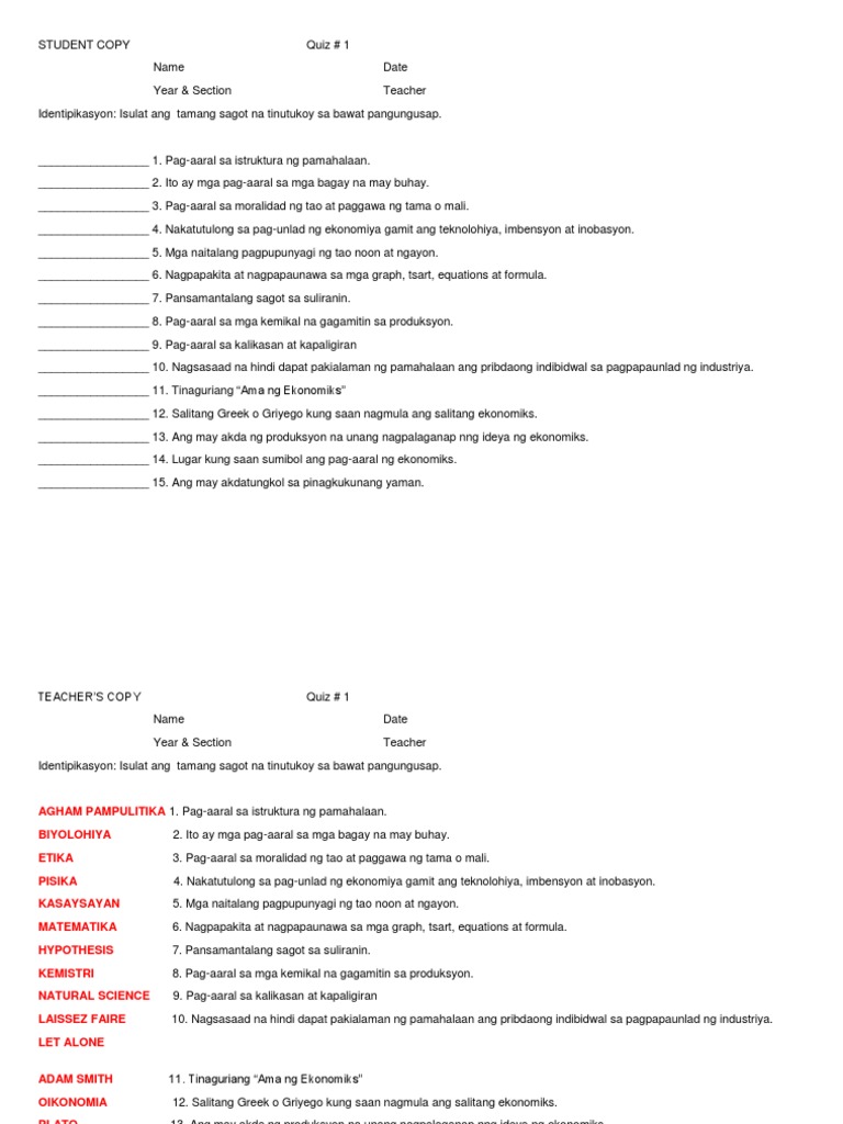 Maikling Pagsusulit Sa Ekonomiks