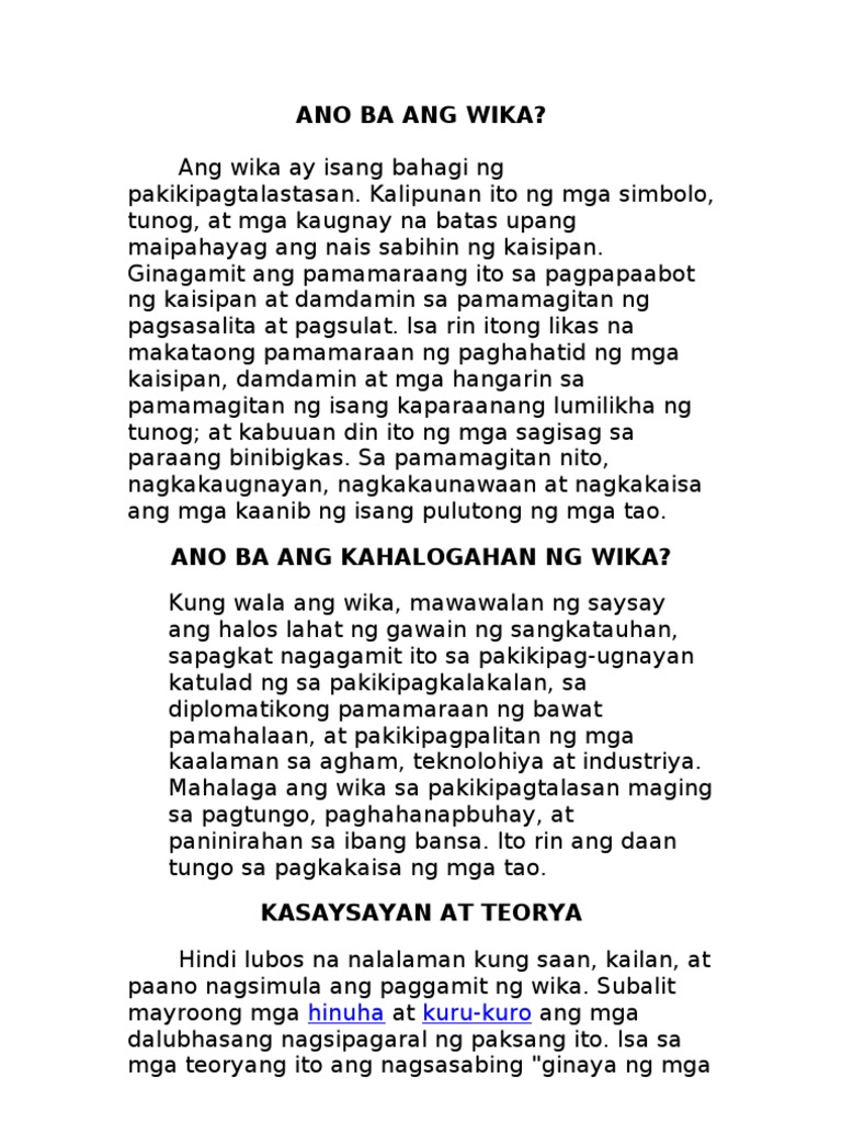 Wika iyan ang dahilan kung bakit tayoy nagkakaunawaan. Teorya ng Wika. Tinatawag ding salita ang wika.