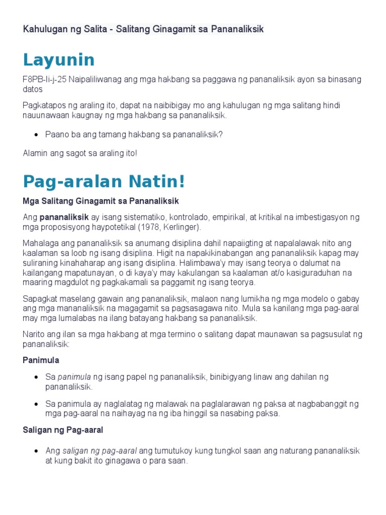 1 6 Kahulugan Ng Salita Salitang Ginagamit Sa Pananaliksik
